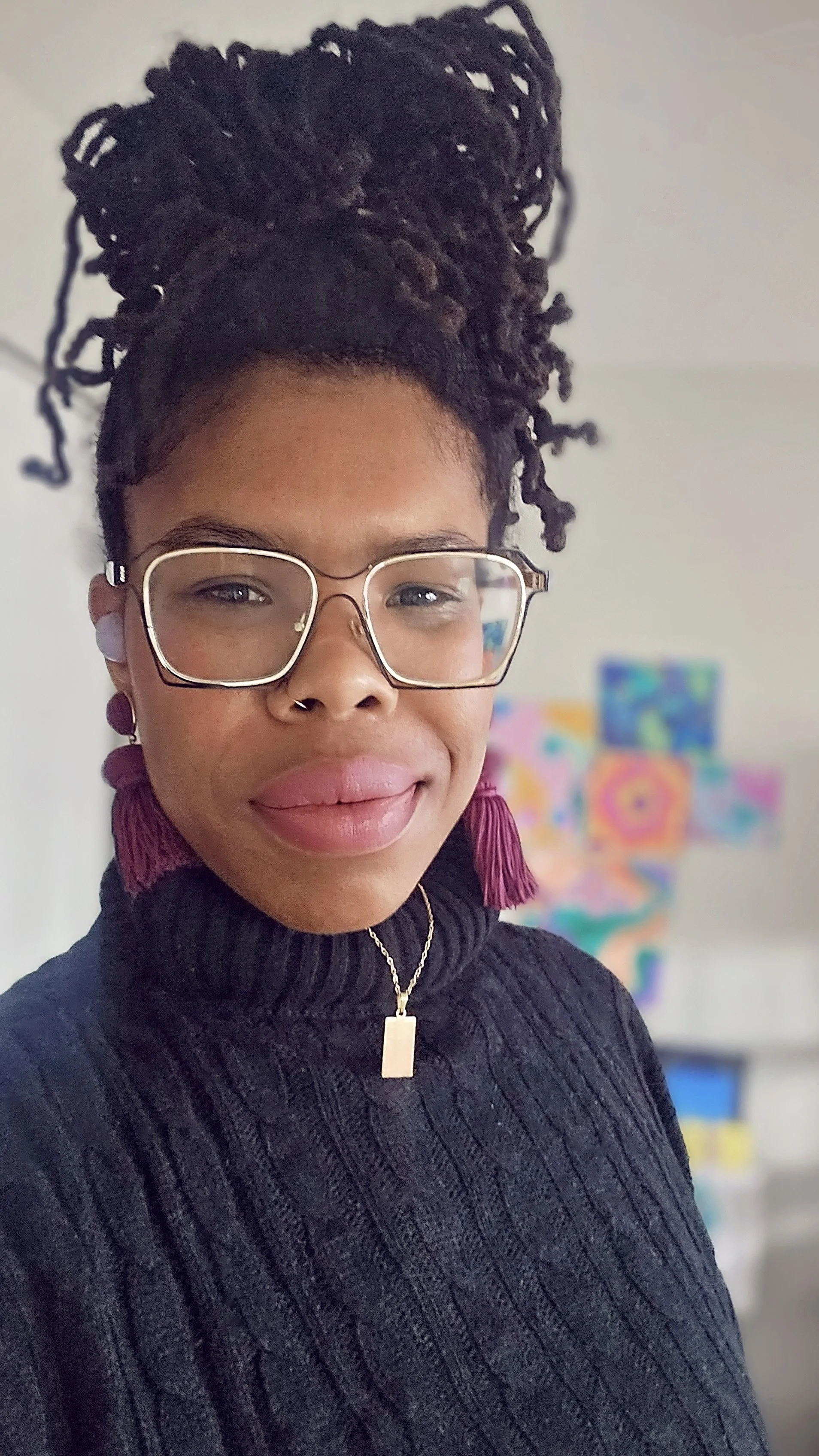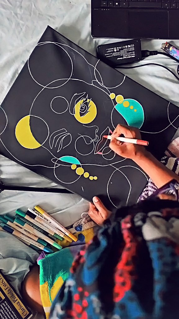 As an explorer of art and a creative at heart, I love testing mediums and using bold color, playful patterns, and expressive portraiture, creating works of art that center joy, beauty, and individuality. I often work with vibrant palettes, organic shapes, and layered textures that evoke movement, growth, and interconnectedness. Floral forms, flowing lines, and rhythmic patterns appear throughout my pieces, symbolizing transformation and the many ways identity evolves.
